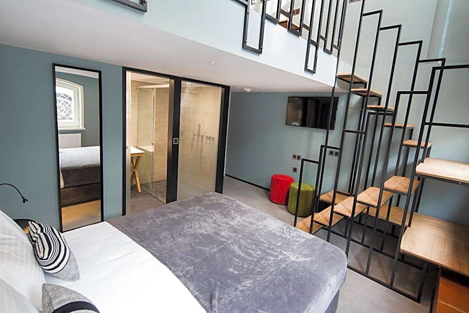 This air-conditioned duplex studio has a Smart TV, refrigerator, laptop-size safe and a private bathroom with shower.